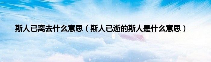 大家好,小科来为大家解答以上问题。斯人已离去什么意思,斯人已逝的斯人是什么意思很多人还不知道,现在让我们一起来看看吧!