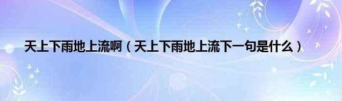 大家好,小科来为大家解答以上问题。天上下雨地上流啊,天上下雨地上流下一句是什么很多人还不知道,现在让我们一起来看看吧!