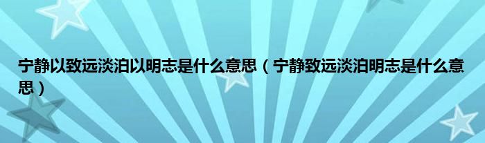 宁静以致远淡泊以明志是什么意思(宁静致远淡泊明志是什么意思)
