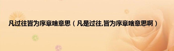 大家好,小科来为大家解答以上问题。凡过往皆为序章啥意思,凡是过往,皆为序章啥意思啊很多人还不知道,现在让我们一起来看看吧!