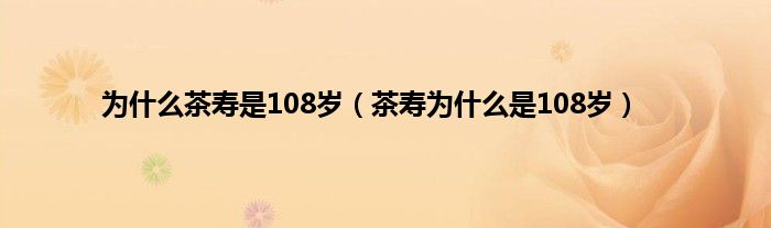 大家好,小科来为大家解答以上问题。为什么茶寿是108岁,茶寿为什么是108岁很多人还不知道,现在让我们一起来看看吧!