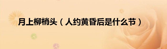 大家好,小科来为大家解答以上问题。月上柳梢头,人约黄昏后是什么节很多人还不知道,现在让我们一起来看看吧!