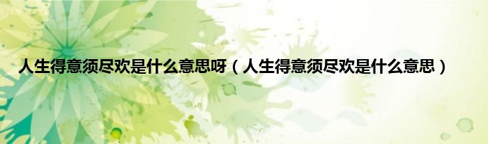 大家好,小科来为大家解答以上问题。人生得意须尽欢是什么意思呀,人生得意须尽欢是什么意思很多人还不知道,现在让我们一起来看看吧!