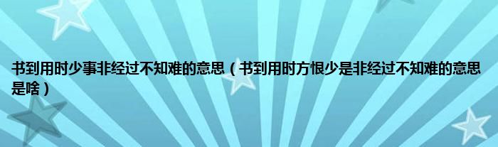 大家好,小科来为大家解答以上问题。书到用时少事非经过不知难的意思,书到用时方恨少是非经过不知难的意思是啥很多人还不知道,现在让我们一起来看看吧!