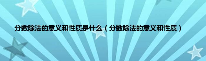 大家好,小科来为大家解答以上问题。分数除法的意义和性质是什么,分数除法的意义和性质很多人还不知道,现在让我们一起来看看吧!