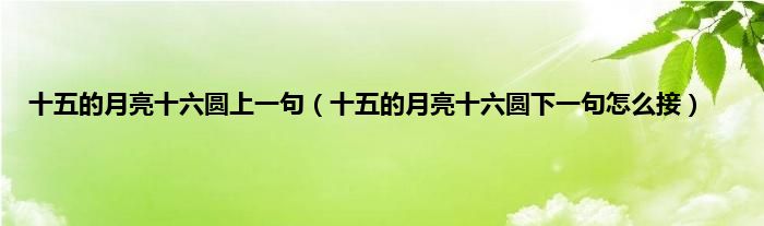 大家好,小科来为大家解答以上问题。十五的月亮十六圆上一句,十五的月亮十六圆下一句怎么接很多人还不知道,现在让我们一起来看看吧!