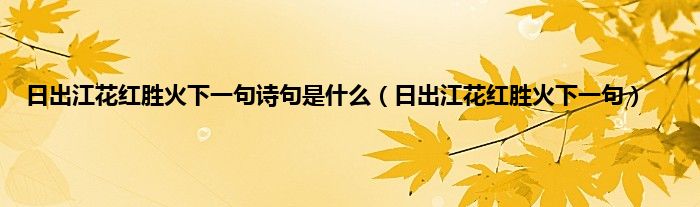 大家好,小科来为大家解答以上问题。日出江花红胜火下一句诗句是什么,日出江花红胜火下一句很多人还不知道,现在让我们一起来看看吧!