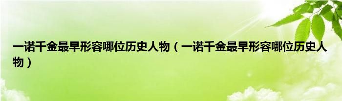 大家好,小科来为大家解答以上问题。一诺千金最早形容哪位历史人物,一诺千金最早形容哪位历史人物很多人还不知道,现在让我们一起来看看吧!