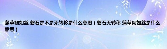 大家好,小科来为大家解答以上问题。蒲草韧如丝,磐石是不是无转移是什么意思,磐石无转移,蒲草韧如丝是什么意思很多人还不知道,现在让我们一起来看看吧!