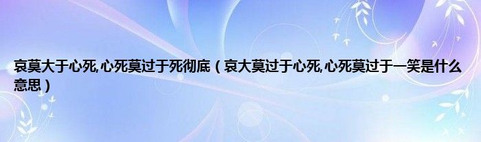 大家好,小科来为大家解答以上问题。哀莫大于心死,心死莫过于死彻底,哀大莫过于心死,心死莫过于一笑是什么意思很多人还不知道,现在让我们一起来看看吧!
