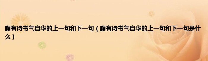 大家好,小科来为大家解答以上问题。腹有诗书气自华的上一句和下一句,腹有诗书气自华的上一句和下一句是什么很多人还不知道,现在让我们一起来看看吧!