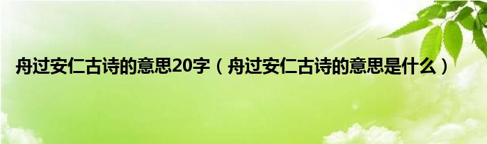 大家好,小科来为大家解答以上问题。舟过安仁古诗的意思20字,舟过安仁古诗的意思是什么很多人还不知道,现在让我们一起来看看吧!