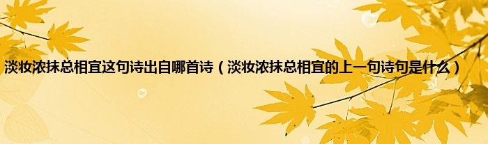 淡妆浓抹总相宜这句诗出自哪首诗(淡妆浓抹总相宜的上一句诗句是什么)
