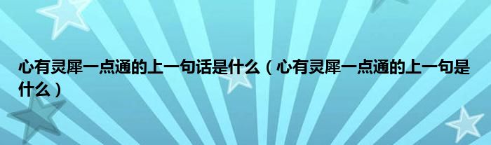 大家好,小科来为大家解答以上问题。心有灵犀一点通的上一句话是什么,心有灵犀一点通的上一句是什么很多人还不知道,现在让我们一起来看看吧!