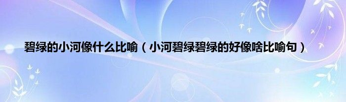 大家好,小科来为大家解答以上问题。碧绿的小河像什么比喻,小河碧绿碧绿的好像啥比喻句很多人还不知道,现在让我们一起来看看吧!