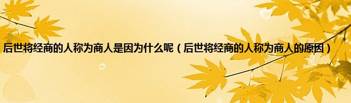 大家好,小科来为大家解答以上问题。后世将经商的人称为商人是因为什么呢,后世将经商的人称为商人的原因很多人还不知道,现在让我们一起来看看吧!