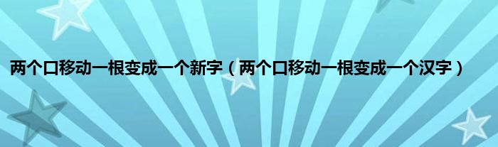 大家好,小科来为大家解答以上问题。两个口移动一根变成一个新字,两个口移动一根变成一个汉字很多人还不知道,现在让我们一起来看看吧!