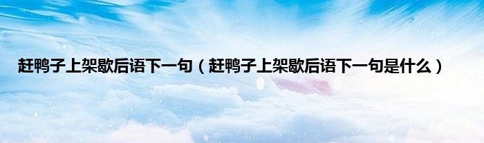 大家好,小科来为大家解答以上问题。赶鸭子上架歇后语下一句,赶鸭子上架歇后语下一句是什么很多人还不知道,现在让我们一起来看看吧!