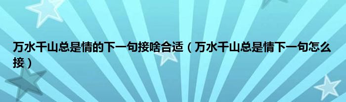 大家好,小科来为大家解答以上问题。万水千山总是情的下一句接啥合适,万水千山总是情下一句怎么接很多人还不知道,现在让我们一起来看看吧!