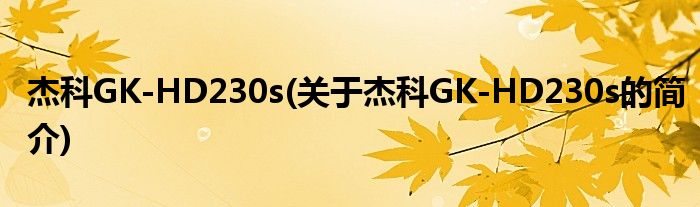 本文关于杰科GK-HD230s的简介就讲解完毕,希望对大家有所帮助。