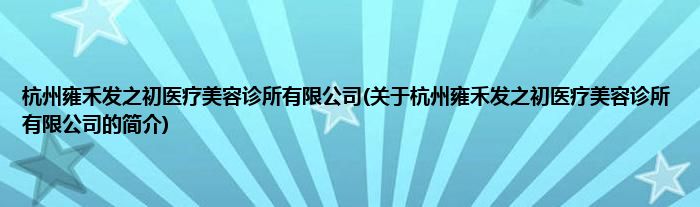 本文关于杭州雍禾发之初医疗美容诊所有限公司的简介就讲解完毕,希望对大家有所帮助。
