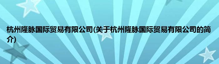本文关于杭州隆脉国际贸易有限公司的简介就讲解完毕,希望对大家有所帮助。