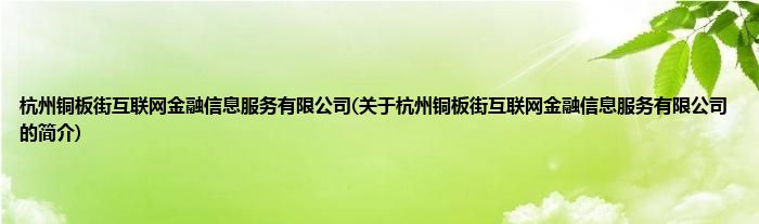 本文关于杭州铜板街互联网金融信息服务有限公司的简介就讲解完毕,希望对大家有所帮助。