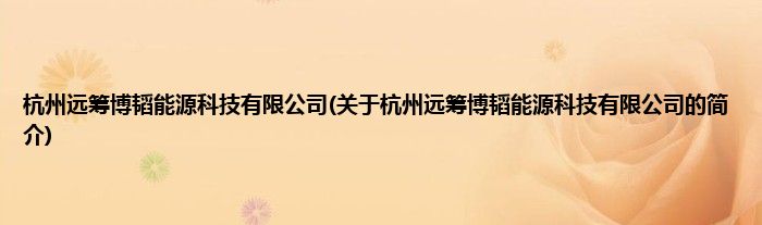 本文关于杭州远筹博韬能源科技有限公司的简介就讲解完毕,希望对大家有所帮助。