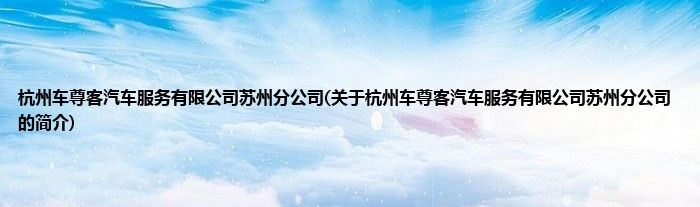 杭州车尊客汽车服务有限公司苏州分公司(关于杭州车尊客汽车服务有限公司苏州分公司的简介)