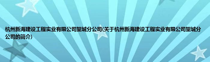 杭州新海建设工程实业有限公司望城分公司(关于杭州新海建设工程实业有限公司望城分公司的简介)