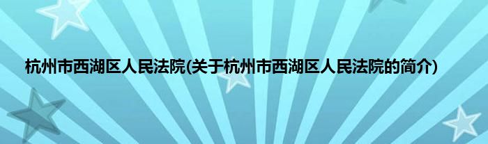 大家好,杭州市西湖区人民法院,关于杭州市西湖区人民法院的简介很多人还不知道,现在让我们一起来看看吧!