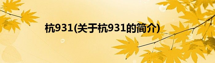 杭931(关于杭931的简介)