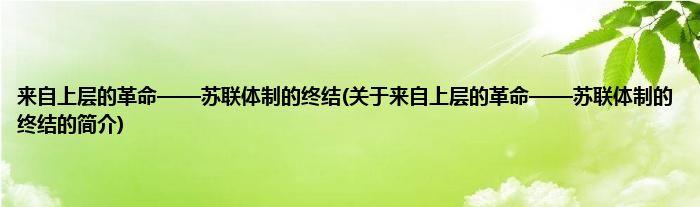大家好,来自上层的革命——苏联体制的终结,关于来自上层的革命——苏联体制的终结的简介很多人还不知道,现在让我们一起来看看吧!
