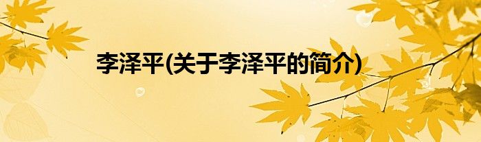 本文关于李泽平的简介就讲解完毕,希望对大家有所帮助。