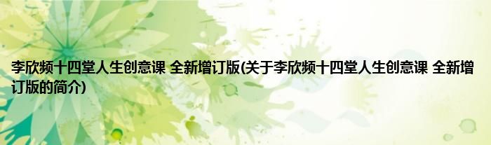 1、 《李欣频十四堂人生创意课(全新增订版)》是2008年10月由东观出版的图书。