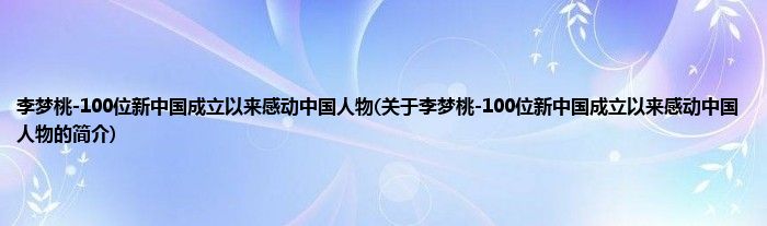 李梦桃-100位新中国成立以来感动中国人物(关于李梦桃-100位新中国成立以来感...