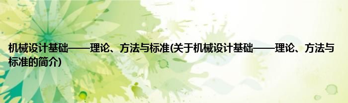 本文关于机械设计基础——理论、方法与标准的简介就讲解完毕,希望对大家有所帮助。