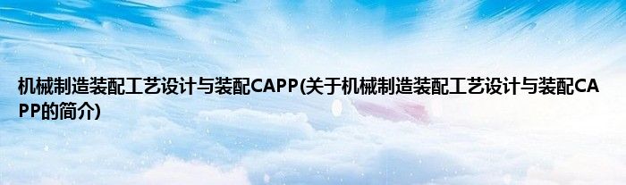 大家好,机械制造装配工艺设计与装配CAPP,关于机械制造装配工艺设计与装配CAPP的简介很多人还不知道,现在让我们一起来看看吧!