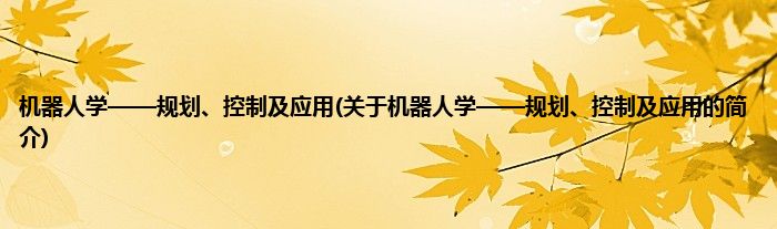 机器人学——规划、控制及应用(关于机器人学——规划、控制及应用的简介)