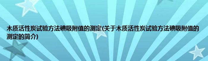 本文关于木质活性炭试验方法碘吸附值的测定的简介就讲解完毕,希望对大家有所帮助。