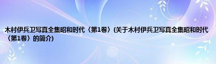 1、 《木村伊兵卫写真全集昭和时代〈第1巻〉》是筑摩書房出版的图书。