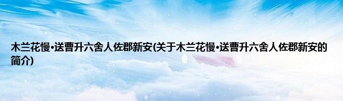 木兰花慢·送曹升六舍人佐郡新安(关于木兰花慢·送曹升六舍人佐郡新安的简介)