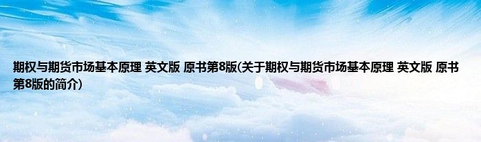 期权与期货市场基本原理英文版原书第8版(关于期权与期货市场基本原理英文版原书第8...