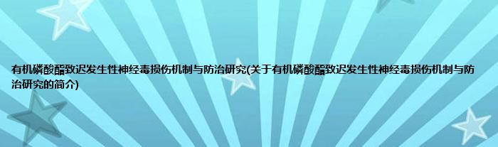 本文关于有机磷酸酯致迟发生性神经毒损伤机制与防治研究的简介就讲解完毕,希望对大家有所帮助。