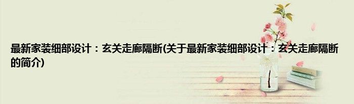 最新家装细部设计:玄关走廊隔断(关于最新家装细部设计:玄关走廊隔断的简介)