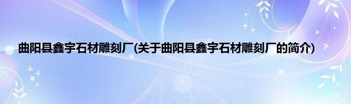 曲阳县鑫宇石材雕刻厂(关于曲阳县鑫宇石材雕刻厂的简介)