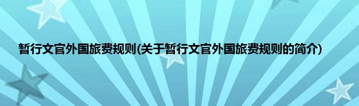 本文关于暂行文官外国旅费规则的简介就讲解完毕,希望对大家有所帮助。