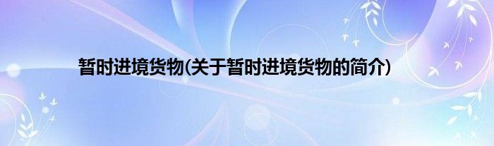 本文关于暂时进境货物的简介就讲解完毕,希望对大家有所帮助。