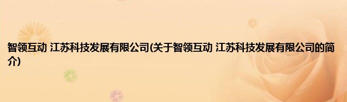 本文关于智领互动 江苏科技发展有限公司的简介就讲解完毕,希望对大家有所帮助。
