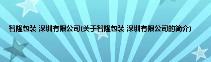 智隆包装 深圳有限公司(关于智隆包装 深圳有限公司的简介)
